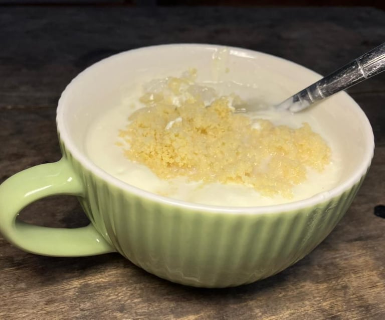 Le mil est d’abord cuit puis refroidi, avant d’être mélangé avec le yaourt sucré et parfumé. On le laisse ensuite reposer au frais. Une fois frais, vous aurez une texture douce, légèrement acidulée, qui se savoure bien froide, surtout sous le soleil africain.